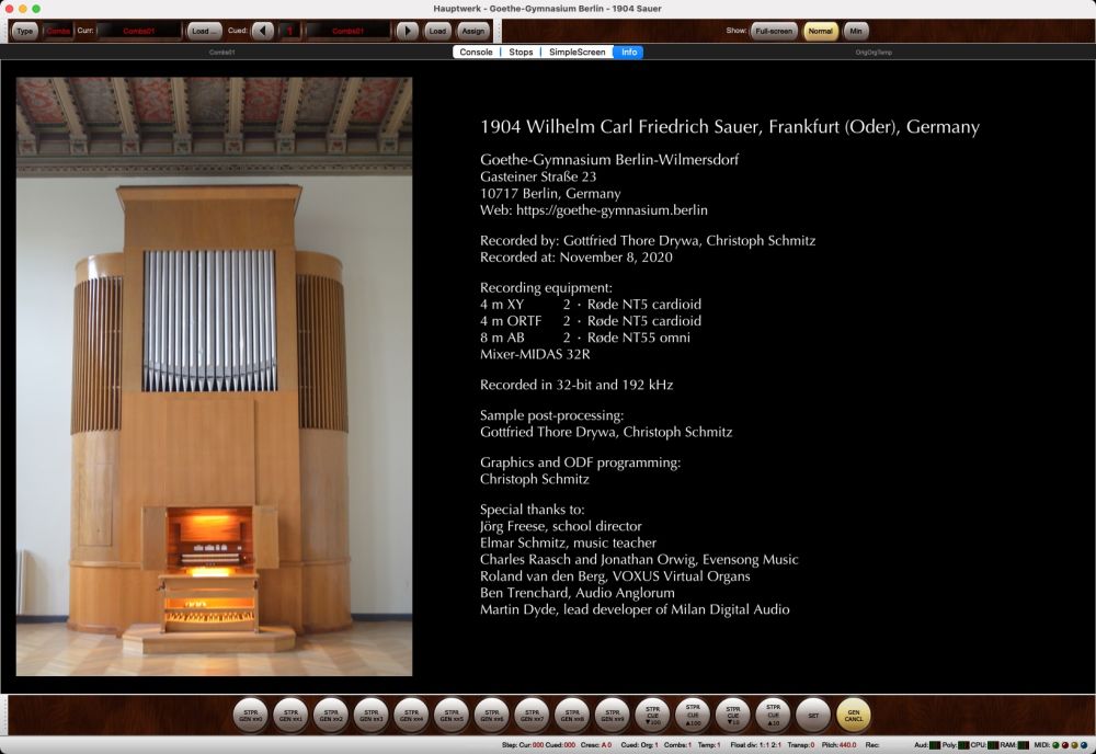 Oktober 2020 wurde ein digitales Hauptwerk Sampleset der Sauer-Orgel