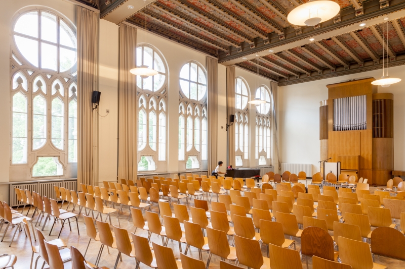 der historischen Aula von der Kanzel der Orgel aus gesehen (Quelle: